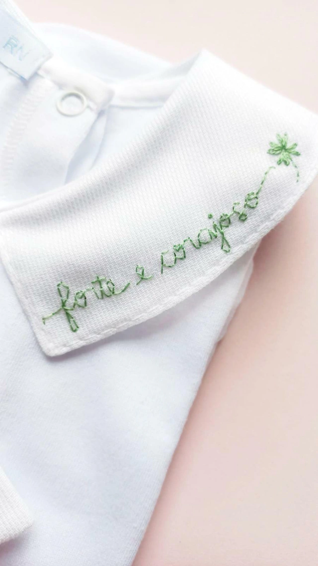 Body bebê Personalizado em malha algodão premium, possui gola bordada à mão com o nome do seu bebê, e frase.