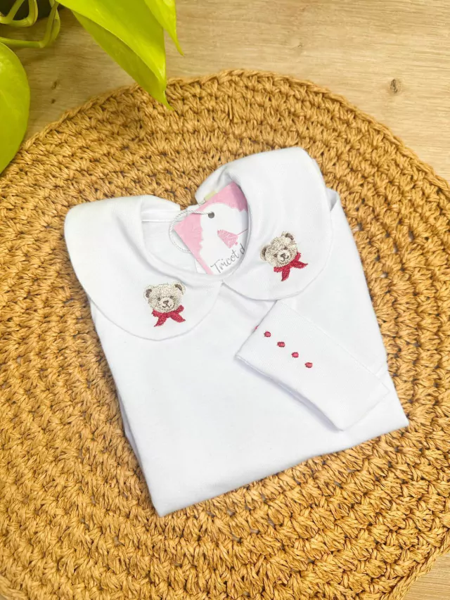 Body modelo ursinha na cor vermelha para as meninas, uma opção linda quando usada junto com nossos tricôs.