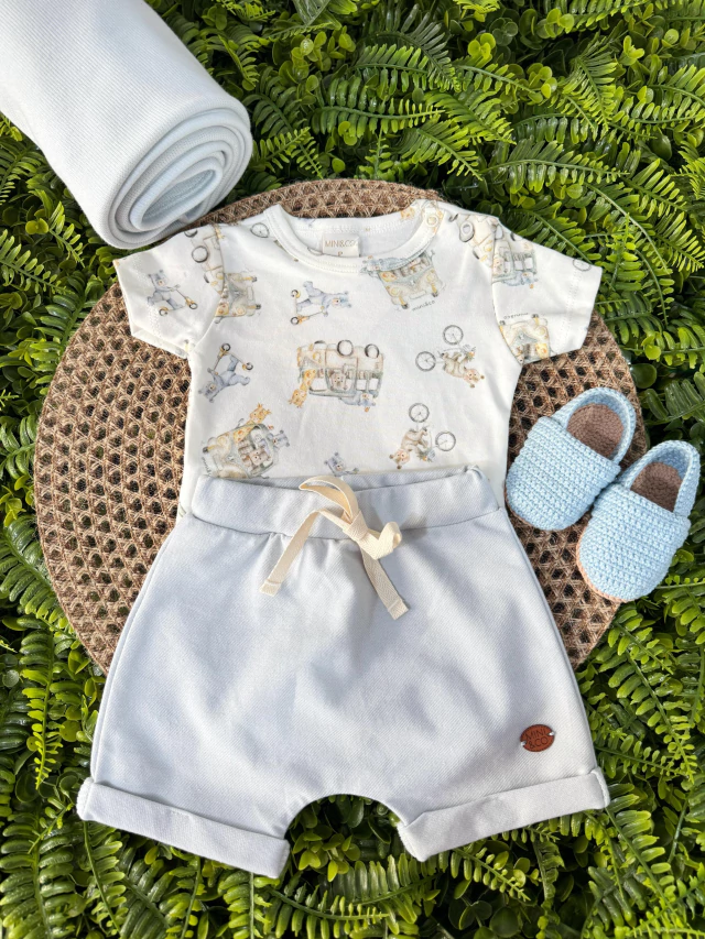 Conjunto Body e Shorts da coleção Bichinhos transportes delicado possui estampa suave xadrez. Toque de extrema maciez e levaza sendo ideal para a pele do seu bebê.