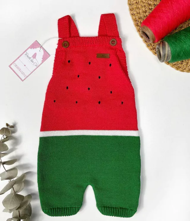 Jardineira Curta Melancia uma fofura cheia de charme;