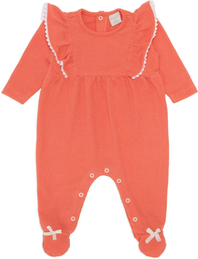 Macacão coleção Hamster tem caimento impecável, com toque de extrema maciez e levaza sendo ideal para a pele do seu bebê. A cor vibrante em tom coral traz vida e alegria ao look, enquanto os detalhes cuidadosamente aplicados, com os babados nos ombros com acabamento em mini pompons e os lacinhos nos pézinhos garante um charme especial.