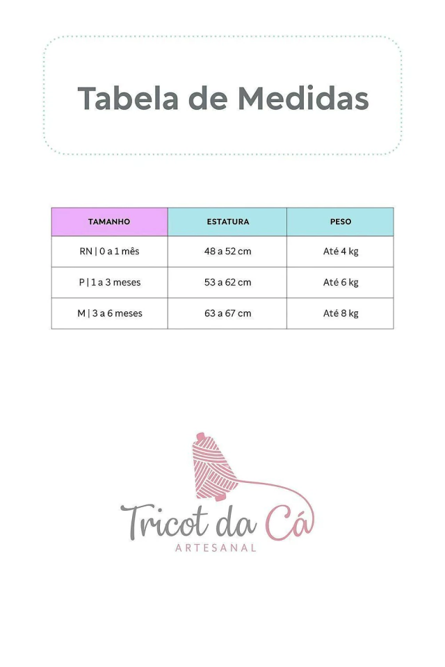 Nosso modelo conta com botõezinhos de pressão entre as perninhas e na parte superior das costas, o que facilita muito na hora de trocar o bebê. O tecido é tricotil feito 100% algodão que lhe confere leveza e toque suave.