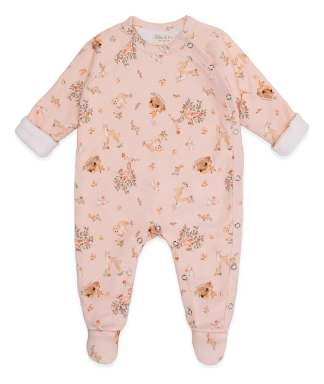 Apresenta uma estampa adorável de floresta salmão, que traz um toque de delicadeza e alegria ao visual da sua pequena. Com uma modelagem cuidadosamente pensada, ele proporciona liberdade de movimento, permitindo que os bebês explorem o mundo com total confortoe estilo.
