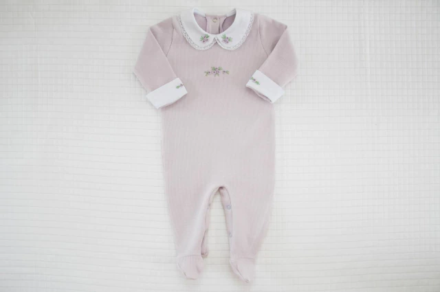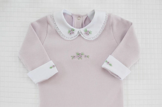 Macacão Tricotil na cor Lilás com golinha bordada em Rococó;