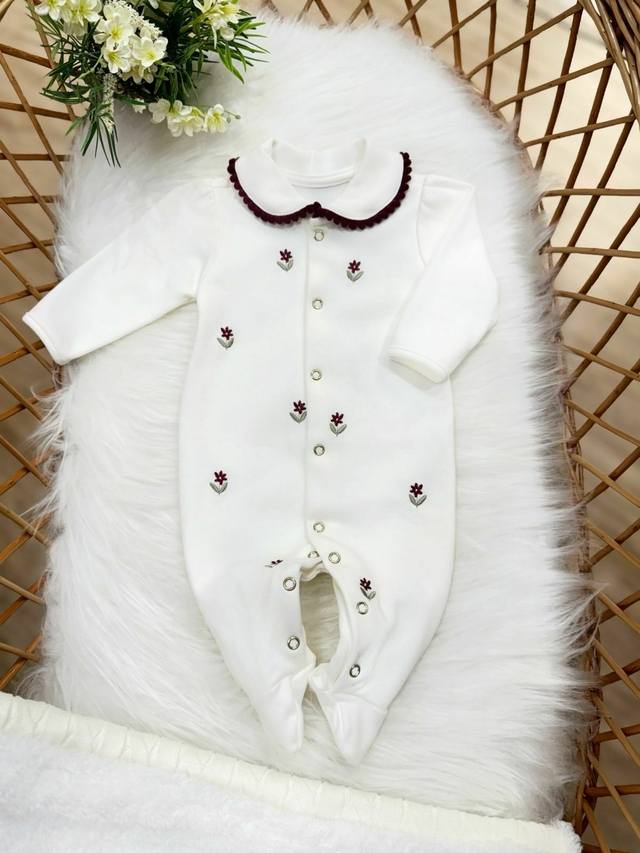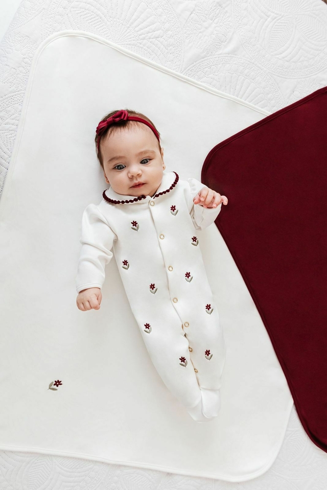 Apresenta uma estampa adorável de tulipas bordo, traz um toque de delicadeza e charme ao visual da sua pequena. Com uma modelagem cuidadosamente pensada, ele proporciona liberdade de movimento permitindo que os bebês explorem o mundo com total confortoe estilo.