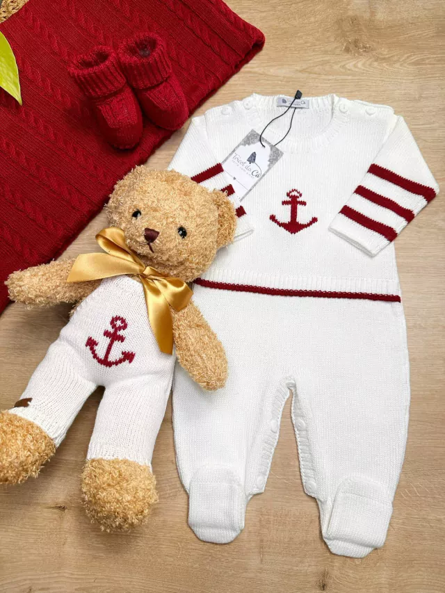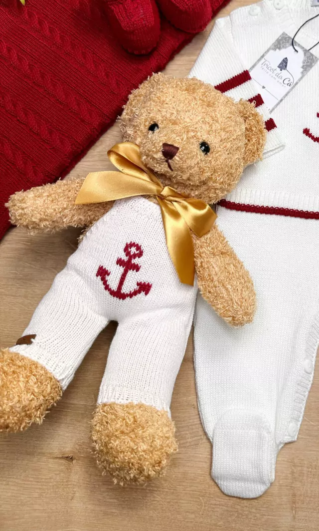 Roupa do ursinho em tricot em algodão. Produto com certificado e aprovado pelo Inmetro, enchimento feito com acrílico e fibra siliconada.